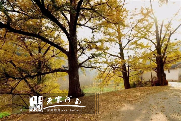 每到深秋,白河鎮(zhèn)上寺、下寺村落中那千年古銀杏樹,黃葉飛舞,金葉紛飛,如同一場銀杏黃金雨,將整個村落慢慢覆蓋,顯得古樸而深邃。