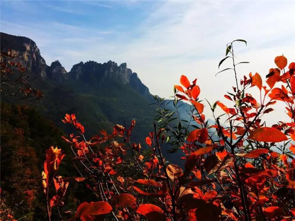 秋日的浮戲山不僅美在山水,更美在紅葉。深秋重陽(yáng)節(jié)前后,樹(shù)葉開(kāi)始迅速變紅,成為了這雄壯畫(huà)卷的主色調(diào),呈現(xiàn)出一派燦爛壯闊,濃彩施繪的多彩世界。