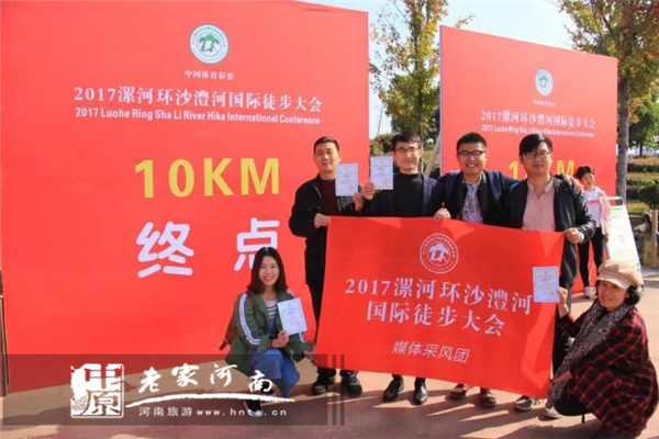 媒體采風團徒步走完全程,終點合影留念