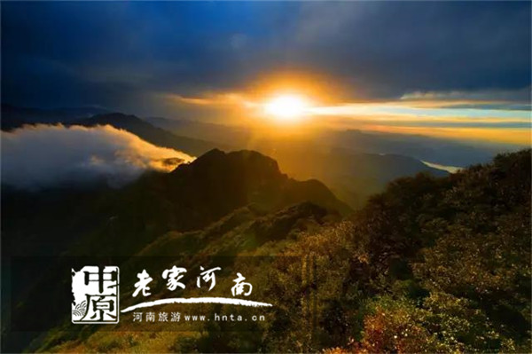 遠(yuǎn)處的青黛還隱隱再現(xiàn),遠(yuǎn)處山峰高聳云間。朝有瑰麗日出,幕有燦爛晚霞。每天、每時(shí)、每刻這座仙山都在變換著模樣,展現(xiàn)著變幻莫測(cè)的萬(wàn)種風(fēng)情。