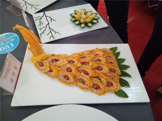 圖為固始迎賓館獲獎(jiǎng)宴席菜現(xiàn)場(chǎng)作品皮絲卷