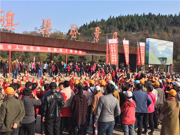激情洋溢的腰鼓、熱情歡快的歌曲……11月4日,來自全國各地的數(shù)千名老人歡聚紅旗渠畔,開啟了在安陽的旅程。一首《歌唱祖國》拉開了安陽第二屆“萬名老人游安陽”大型敬老惠民公益活動的序幕。
