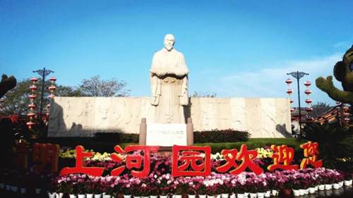 現(xiàn)在是什么季節(jié)呢?深秋?可是已經(jīng)立冬了呀。初冬?但是清明上河園景區(qū)依舊花團錦簇、菊香四溢!