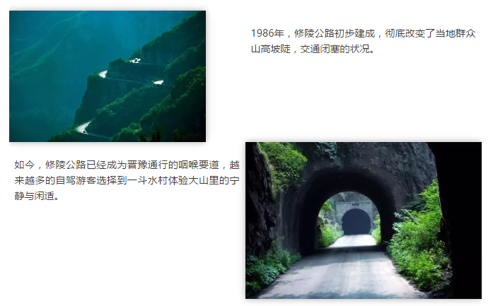 修陵公路是一條貫穿豫晉兩省的交通要道,全長(zhǎng)102公里,途經(jīng)云臺(tái)山岸上服務(wù)區(qū)至古村一斗水。