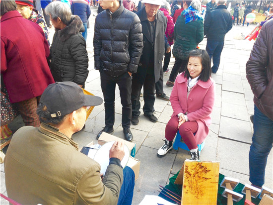 廟會(huì)上,書(shū)法、字畫(huà)展也頗受游客的青睞,一位畫(huà)師特意從外地趕來(lái),為趕會(huì)的人們題字畫(huà)像。