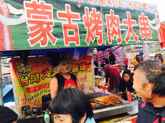 在中岳廟廣場(chǎng)和第一進(jìn)院落遙參亭的周?chē),擺滿了各種攤位。鐵板炒涼粉、烤肉串、焦蓋燒餅、灌湯包……各種美食的香味挑逗游客的味蕾,吸引趕會(huì)游客們紛紛駐足品嘗。來(lái)自洛陽(yáng)的王先生表示,“早就聽(tīng)說(shuō)千年中岳廟會(huì)的大名,這次來(lái)才發(fā)現(xiàn)果真名不虛傳!”