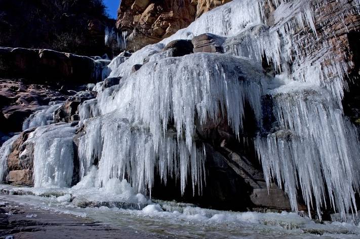 浮戲山的冬,美在水的靈動(dòng),一場(chǎng)大雪讓它美成了冰雪世界,一眼望去,白茫茫一片,層層冰掛更為這個(gè)潔白靜謐的的美景增添了幾分磅礴大氣。凝結(jié)的冰掛,蒼茫的雪景,峭立的山崖,構(gòu)成了一幅奇特的景觀......