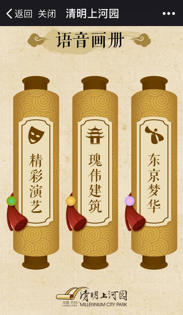 目前,清明上河園定制版智慧語音畫冊已覆蓋景區(qū)內(nèi)包括精彩演繹、瑰偉建筑、東京夢華三大板塊的特色景點共計40處。