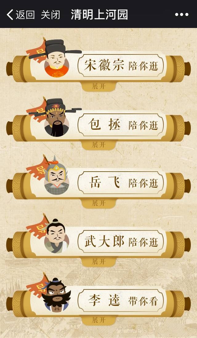 “大宋網(wǎng)紅帶你逛清園”項目是清明上河園選取40個特色景點攜手騰訊公司定制的智慧語音畫冊。除了借力現(xiàn)代科技,還搬來了《清明上河圖》作者張澤端、鐵面無私的包拯、精忠報國的岳飛、梁山好漢們等大宋網(wǎng)紅集體出演,以第一人稱、網(wǎng)絡(luò)化和幽默逗趣方式代言和播報語音畫冊,宋代名人輪番上陣,營造詼諧幽默的氛圍,帶游客領(lǐng)略景區(qū)特色風(fēng)景,講述發(fā)生在那個傳奇朝代的別樣故事。