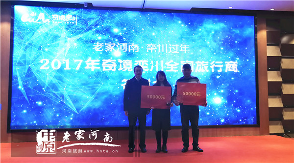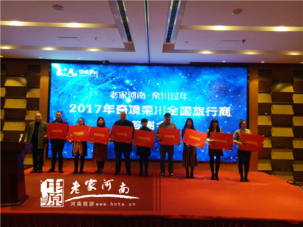 12月27日,“老家河南·欒川過年”2017年奇境欒川全國旅行商答謝會在鄭州舉行。欒川縣委常委、宣傳部長呂振濤,欒川縣旅游工作委員會主任孫欣欣,欒川縣雞冠洞、老君山、重渡溝等景區(qū)主要負(fù)責(zé)人參加此次答謝會,并為獲獎(jiǎng)的旅行社頒獎(jiǎng)。
