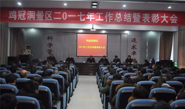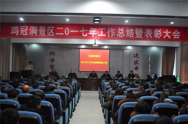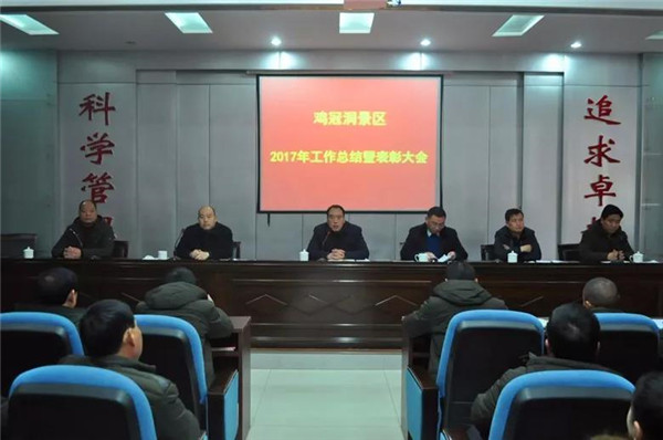 12月30日上午,雞冠洞景區(qū)召開2017年工作總結(jié)曁表彰大會。
