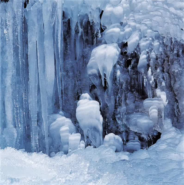 天氣一冷,云臺山往日瀟灑的流水就被冰封,水晶世界一夜形成,覆蓋整個山體,仿佛時間都凍住了!