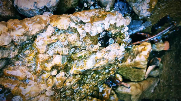 流水飛濺到石頭上,像開了花一樣,顆顆粒粒像晶瑩剔透的水晶石,純凈天然~