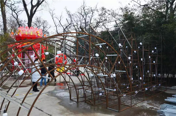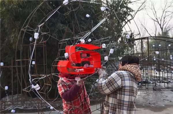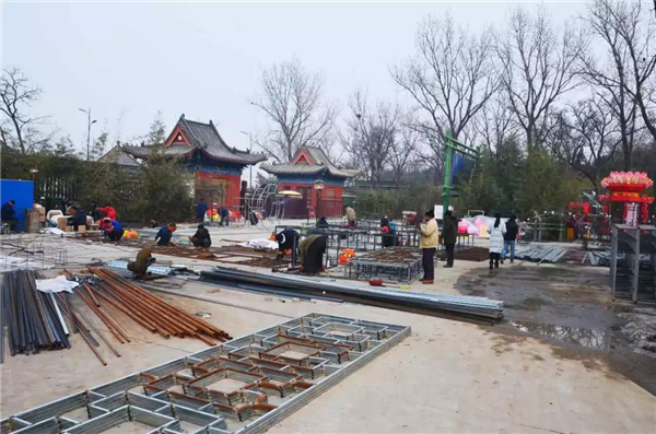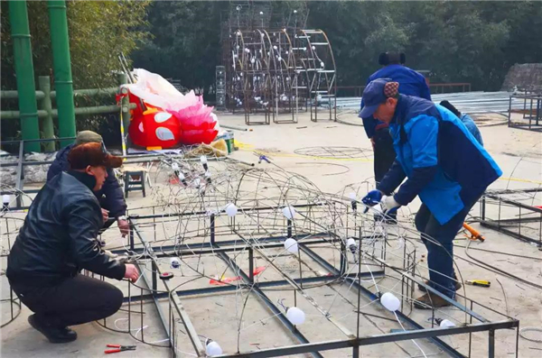 來自各地的能工巧匠正在精心制作廟會氣氛造型,冰冷的鋼材在他們的指尖綻放出新年的溫度和色彩!