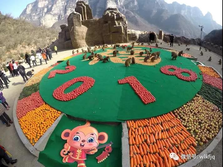 2017年12月31日,景區(qū)為太行獼猴舉辦了“跨年派對(duì)” , 直徑12米的圓盤上擺滿了猴子喜歡的“果蔬雜糧”,獼猴享盡口福。