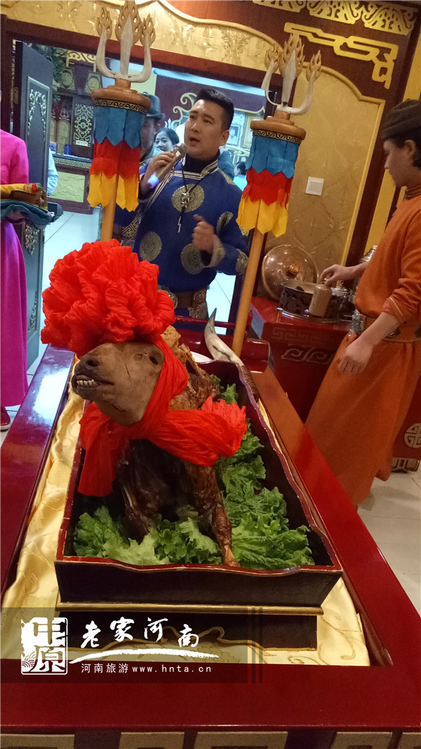 在鄂溫克草原體驗(yàn)了蒙族生活后已是夜幕,我們便驅(qū)車前往海拉爾市,它是呼倫貝爾市政治、交通和文化中心,也是呼倫貝爾市人民政府所在地。當(dāng)晚在愛星航空的悉心安排下,我們品嘗了當(dāng)?shù)刈顐鹘y(tǒng)和正宗的全羊宴,渾厚的蒙古歌聲響起,大家的熱情已經(jīng)非常高漲。