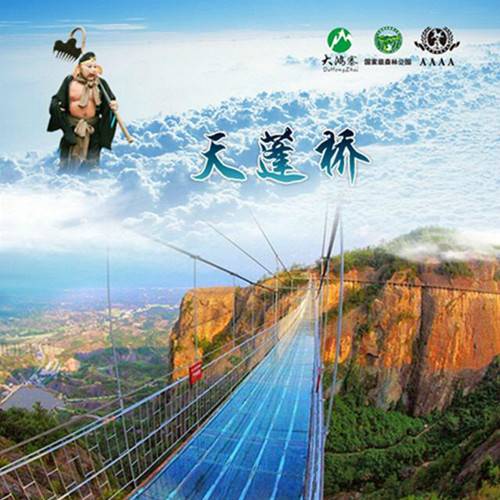 大鴻寨5D玻璃天橋取名“天蓬橋”也頗有深意,因大鴻寨的龍泉寺是八戒原型——漢魏時(shí)期高僧朱士行(法號八戒)的修行地,所以八戒文化深入人心,民間之八戒,仙境曰天蓬,與龍泉寺的淵源十分契合。大鴻寨天蓬橋全長268米,垂直高度達(dá)158米,每塊玻璃板厚達(dá)24mm,雙層構(gòu)造,具有抗彎曲、耐沖擊、強(qiáng)度高等特點(diǎn),保障了游客的安全。大鴻寨天蓬橋不論從長度、高度,還是視覺特效等方面都不負(fù)“中原首家5D玻璃天橋”的稱號。