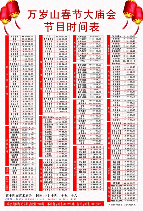 廟會(huì)狂歡時(shí)間:大年初一至正月十七(2018年2月16日至3月4日)