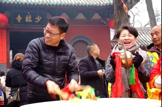演出間隙,游客們紛紛上前,拿起道具,希望自己也能夠過一把“表演癮”。來自鄭州的黃先生女兒五年前遠(yuǎn)嫁山東,自2013年起,夫婦兩人每年正月初三都要來少林寺上香祈福。他們一方面想在佛祖面前為女兒祈福許愿,另一方面也是享受一下工作之余難得的二人世界。