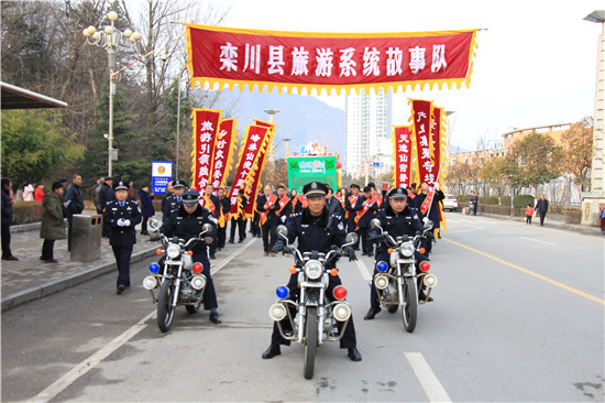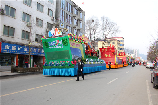 正月十五鬧元宵,共度和諧幸福年。全縣各行各業(yè)用民俗故事表演和巡游花車,以嶄新的精神面貌、昂揚(yáng)向上的奮進(jìn)姿態(tài),迎接全縣人民的檢閱。鑼鼓喧天鬧元宵,火龍舞罷,雄獅登場(chǎng),劃旱船,小鬼摔跤,欒川街頭精彩不斷,每個(gè)故事隊(duì)都用飽滿的熱情,給廣大人民群眾帶來了一場(chǎng)精彩的民俗盛宴。欒川縣旅游系統(tǒng)十輛花車浩浩蕩蕩在縣城巡演,其中以首車的表演最為精彩,一曲《唱響新時(shí)代》歌舞表演,吸引群眾紛紛圍攏過來翹首觀看。欒川縣各景區(qū)的花車造型各異,不僅展現(xiàn)了景區(qū)特色,還帶來了精彩的情景演出,傳遞出欒川旅游人創(chuàng)新、激情、協(xié)作、擔(dān)當(dāng)?shù)木衩婷病?br />