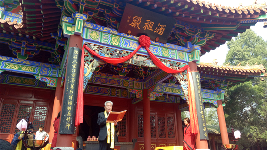 上午9點(diǎn)50分,酒祖大殿,鳴炮奏樂,拜祖大典正式開始,祭祖儀式遵從古訓(xùn),敬高香、吟酒祖賦、三敬酒、三獻(xiàn)禮、齊敬拜……在莊重肅穆的大典上,全國媒體代表向酒祖杜康送上最崇高的敬意。