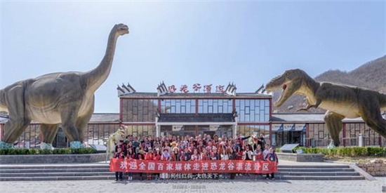 3月27日下午,采風(fēng)團(tuán)的記者又來到汝陽恐龍谷漂流景區(qū)?铸埞绕鞑粌H僅是漂流,它最大程度地融合了恐龍文化于其中,幾近完美地還原了恐龍遠(yuǎn)古時(shí)代的生活場(chǎng)景。