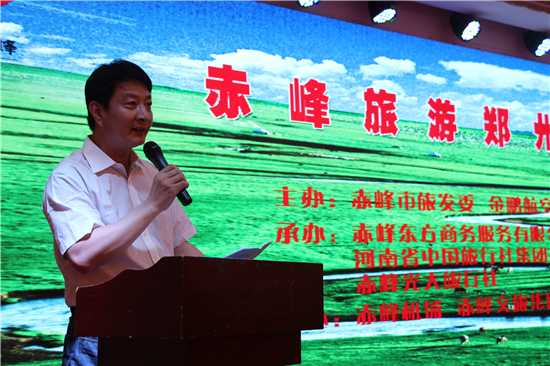 赤峰市旅發(fā)委副主任韓雷在推介會上發(fā)言