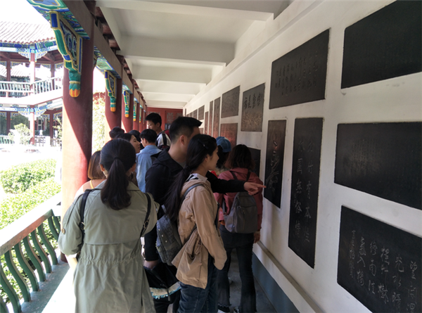 在導游的帶領下,同學們參觀了碑廊,了解書法藝術的魅力,從甲骨文到現(xiàn)代使用的簡化漢字,篆、隸、楷、行、草的藝術之美讓同學們紛紛發(fā)出驚嘆。
