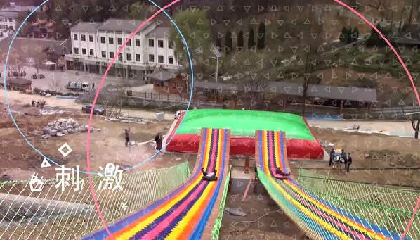 景區(qū)高空飛碟在高空玻璃索橋下方,刺激好玩!