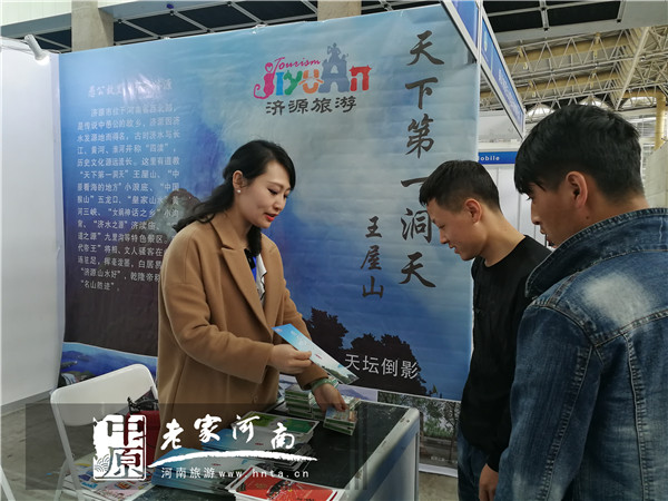 大會期間,采用圖片展示、現(xiàn)場講解、發(fā)放資料、掃碼送紀念品、主動與參展商、游客互動等方式積極宣傳愚公文化、黃河文化、道教文化、創(chuàng)世文化等獨具濟源地域特色的旅游資源,大力推廣“愚公故里 傳奇濟源”旅游品牌形象,吸引了眾多參會者前來了解和咨詢,現(xiàn)場發(fā)放宣傳資料1000余份。