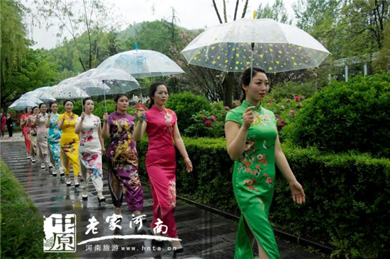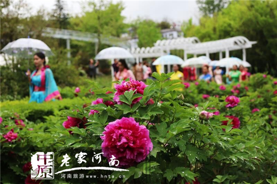 因與一場(chǎng)春雨的邂逅,變的與眾不同。雞冠洞景區(qū)內(nèi)滿園牡丹爭(zhēng)奇斗艷,紅的、白的、粉的、紫的……遠(yuǎn)遠(yuǎn)望去,猶如一幅連綿不斷、精妙絕倫的五彩錦緞,在雨水的滋潤(rùn)下顯得格外嬌艷欲滴,漫步其中,令人欣喜若狂!