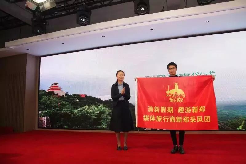新鄭市委常委宣傳部部長(zhǎng)張慧嫻為采風(fēng)媒體代表授旗
