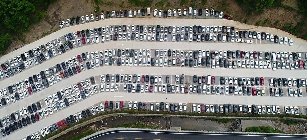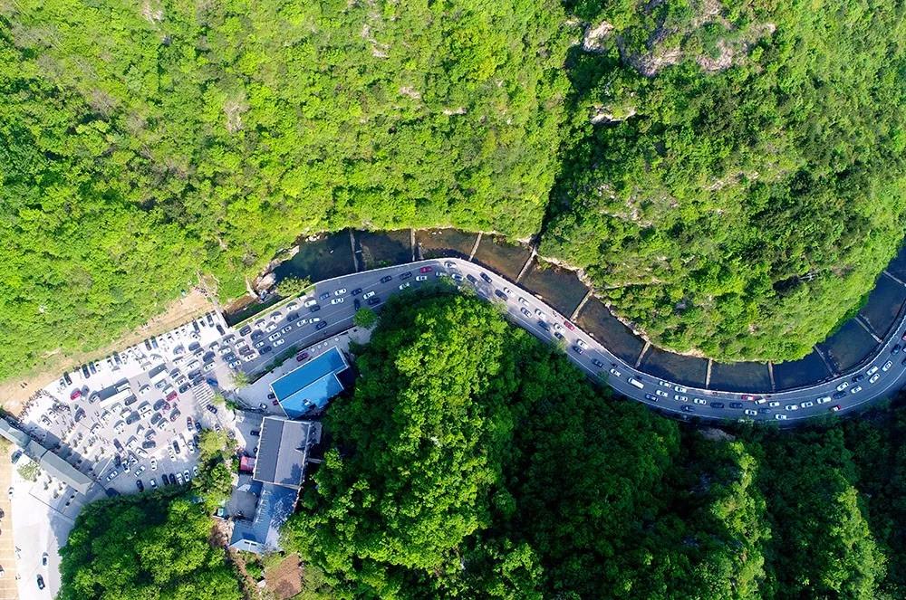 4月30日,五一小長假第二天,河南老君山。景區(qū)內(nèi)停車場全部停滿,游客車輛有序停在道路兩旁。