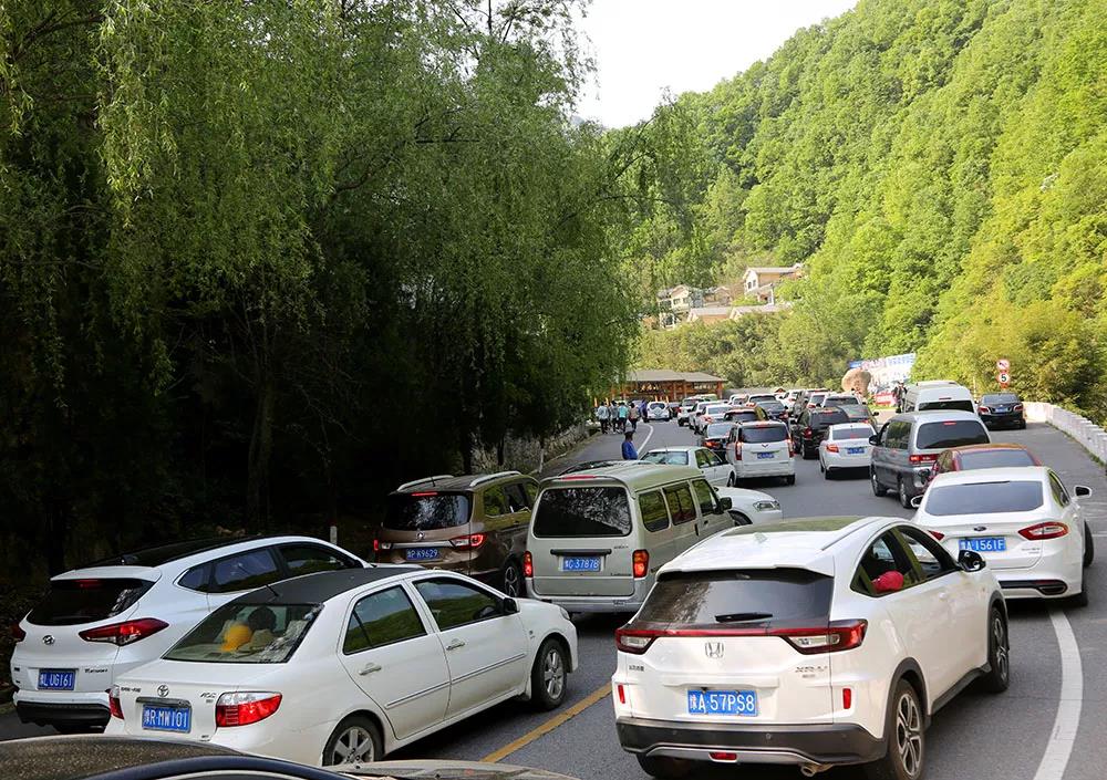 4月30日,五一小長(zhǎng)假第二天,老君山景區(qū)內(nèi)車水馬龍,人流如潮,老君山迎來(lái)客流高峰。上午9時(shí),景區(qū)內(nèi)大小停車場(chǎng)內(nèi)車輛已經(jīng)全部停滿。