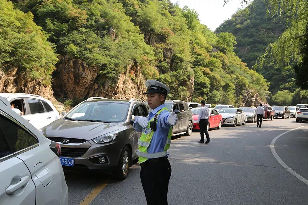上午10時(shí)30分,老君山迎來(lái)第二波客流。景區(qū)檢票口處入園車輛排起長(zhǎng)龍,長(zhǎng)達(dá)數(shù)里。景區(qū)立刻啟動(dòng)緊急預(yù)案,積極應(yīng)對(duì)客流高峰。加強(qiáng)車輛疏導(dǎo),停車場(chǎng)停滿后,車輛有序停放在道路兩旁。加派人手,協(xié)調(diào)交警、旅游警察、綜合執(zhí)法大隊(duì)等部門,抽調(diào)后勤人員全部充實(shí)到一線崗位。重點(diǎn)區(qū)域重點(diǎn)布控,實(shí)行分流和限流。在景區(qū)購(gòu)票處、景區(qū)檢票處至李家溝路段,中靈索道至寨溝路段,每隔100米一名工作人員進(jìn)行交通疏導(dǎo)。