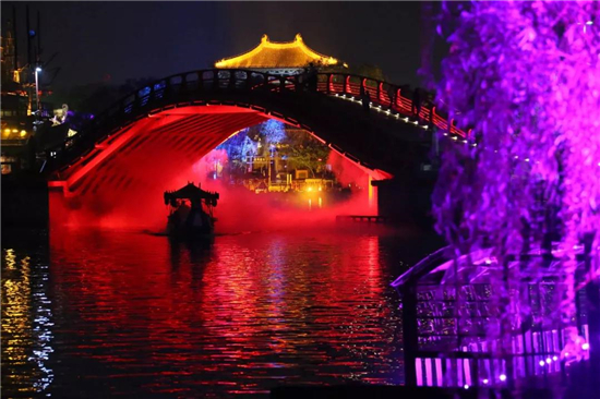 白天,清明上河園是宋風宋韻十足的景區(qū),那么到了晚上,清明上河園則處處呈現(xiàn)著夢幻的效果!洞笏·東京夢華》實景演出美輪美奐,八首經(jīng)典宋詞串聯(lián),如夢似幻的演繹出北宋的興衰。十年鑄精品,《大宋·東京夢華》的口碑,那可是杠杠滴!洞笏·汴河燈影》游船燈光秀,小船悠悠蕩漾汴河,如夢似幻體驗四季,項目一經(jīng)開啟便受到游客一致好評。