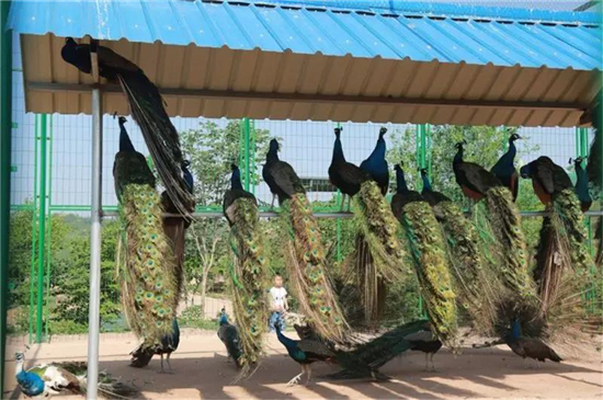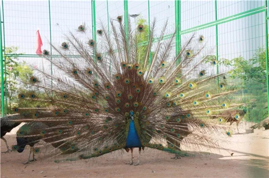 孔雀園占地200畝,內(nèi)部養(yǎng)殖孔雀2000只左右,品種包含白孔雀和藍(lán)孔雀,另有300只造型奇特的火雞,400 只貴妃雞等展出觀賞。