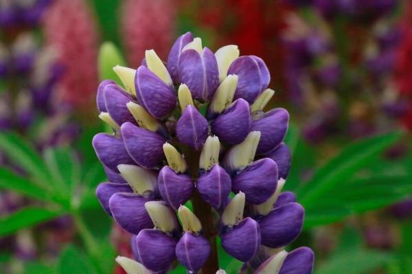 據(jù)了解,魯冰花花序軸纖細(xì),由上百朵蝶形小花密密組成,下方的花互生,上方的花不規(guī)則輪生,花長10-14毫米,除了常見鵝黃色、紅色外,還有淺藍(lán)、粉紅、磚紅、白色及雙色等顏色,散發(fā)著濃烈的沁人心脾的香味。因花色艷麗,花苞飽滿,不少剛走進(jìn)魯冰花園的游客,會誤以為是“塑料花”。據(jù)景區(qū)花卉種植專家陳師傅講,因魯冰花對土壤、溫度要求較高,百草園的魯冰花經(jīng)歷三年的改良培育,才有了現(xiàn)在的景觀效果,為了尋找魯冰花“宜居地”,他在百草園的溝溝岔岔間做過多次實(shí)驗(yàn)。