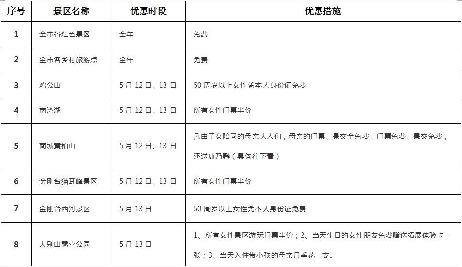獻禮母親節(jié),信陽市各景區(qū)送優(yōu)惠啦!