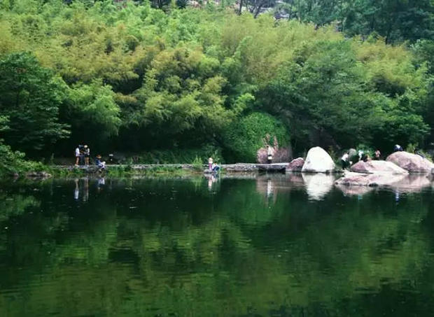 盤(pán)古河時(shí)而狀若白虹,在山谷間奔騰咆哮;時(shí)而沿著山谷,一路高歌;時(shí)而蓄一潭潭黛池,仿佛一方方碧玉靚女,出水芙蓉般嫻靜淑雅。那一汪汪碧綠深潭,那一條條歡快叮咚的清澈溪流,莫非就是天泉仙釀?遙想當(dāng)年,大石雜列,天降神桌,沙場(chǎng)英雄,酣暢淋漓,傾壺而醉。于是就有了崩塌巨石的東倒西歪,猶如一群醉漢。一線(xiàn)天則兩壁夾峙,絕壁項(xiàng)背,青天一線(xiàn),怪石嶙峋,縫隙最窄處僅容一人側(cè)身,而后是絕處逢生的喜悅,是重見(jiàn)天日的光明。