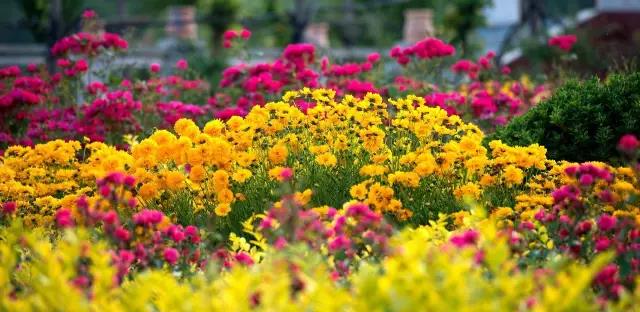 那朵朵飽滿的鮮花,又大又艷,白的,黃的,紅的,粉的......嬌艷欲滴,似乎要窮盡人間顏色。藍(lán)天白云下,嬌艷的花朵,360度每一個(gè)角度都讓人沉醉其中,無法自拔。