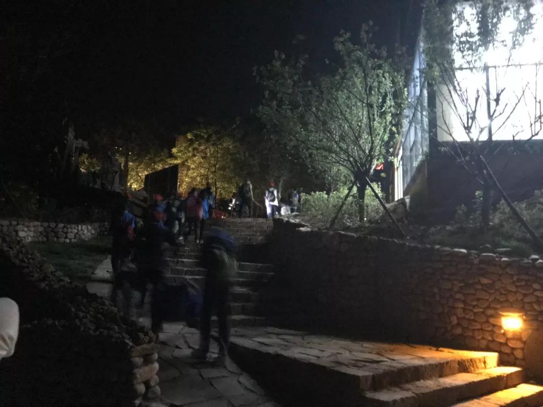 夜幕降臨,學生們在工作人員的引導下,來到愚公移山紅色教育基地露營地。