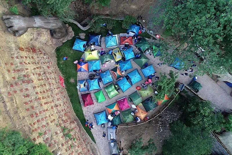 有“露營”的童年才完整——王屋山愚公移山紅色教育基地帳篷嘉年華。王屋山下,對月設野營。拂拂清風催睡意,森森萬樹若云屯。