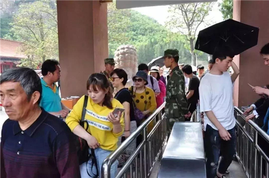 景區(qū)工作人員熱烈歡迎各位武警標(biāo)兵士官及家屬。