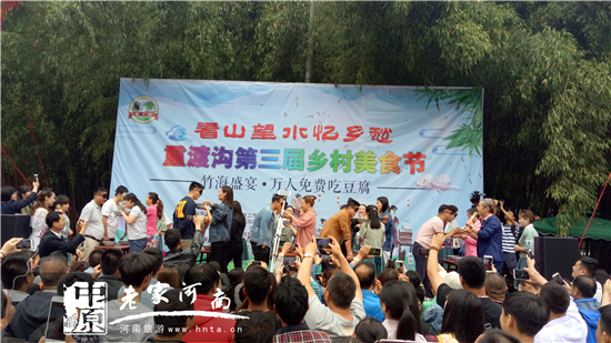 重渡溝景區(qū)萬(wàn)名游客現(xiàn)場(chǎng)秒光5000斤豆腐 免費(fèi)吃還發(fā)錢(qián)