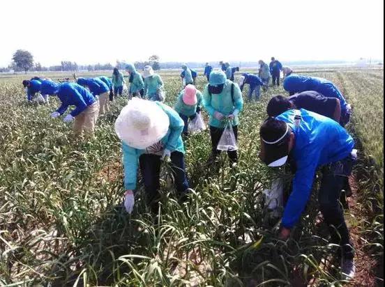 2017年,清明上河園的全體黨員、入黨積極分子及部分團(tuán)干部們發(fā)揚(yáng)雷鋒精神,在祥符區(qū)西姜寨張寨村田間,幫助蒜農(nóng)抽蒜薹,減輕蒜農(nóng)負(fù)擔(dān)。