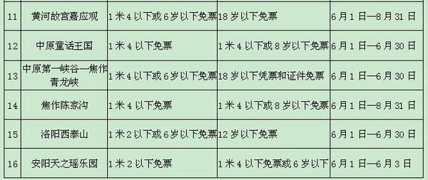 據悉,這16家景區(qū)分別是焦作云臺山、鄭州市動物園、三門峽神龍峽景區(qū)、新鄉(xiāng)八里溝、新鄉(xiāng)九蓮山、新鄉(xiāng)天界山、焦作青龍峽、洛陽西泰山、安陽天之瑤樂園、中原童話王國、中原影視城、黃河故宮嘉應觀、洛陽伊河漂流、鶴壁扈家大院、大宋名相園、焦作陳家溝。