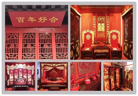 紅色磚墻、紅色木質(zhì)地板、紅色屋脊,從內(nèi)到外,從上到下均以紅色為主調(diào),喜慶的主題與紅樓的外觀相呼應(yīng)。其收集了大宋時(shí)期有關(guān)婚俗的實(shí)物,通過(guò)百年婚禮、百年婚照、百年婚證、百年婚房、千年婚俗等展示,表現(xiàn)了大宋婚俗的百年演變過(guò)程。
