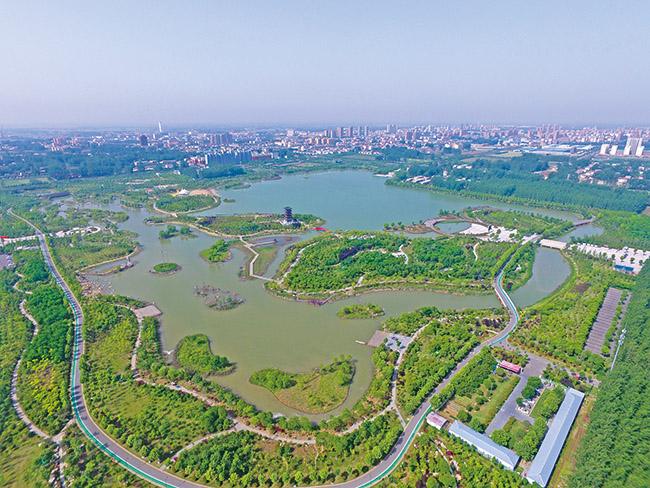 6月4日,臨潁黃龍濕地保護(hù)區(qū)內(nèi)湖水波光粼粼、樹(shù)木郁郁蔥蔥。