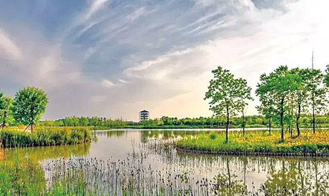 黃龍濕地保護(hù)區(qū)湖區(qū)通過(guò)南水北調(diào)中線和縣域輸水管線獲取丹江口優(yōu)質(zhì)水源,日受水量6.8萬(wàn)噸,總儲(chǔ)水量60萬(wàn)立方米,可滿足城區(qū)企業(yè)和30萬(wàn)人用水問(wèn)題。同時(shí),濕地保護(hù)區(qū)位于新老城區(qū)連接部分,對(duì)促進(jìn)新老城區(qū)融合、提高城市品位、改善人居環(huán)境具有重要意義。